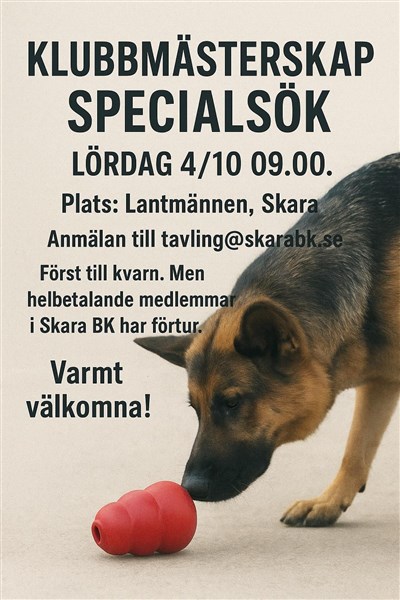 Genom att betala ditt medlemskap accepterar du att Skara Brukshundklubb och Svenska Brukshundklubben sparar dina personuppgifter.